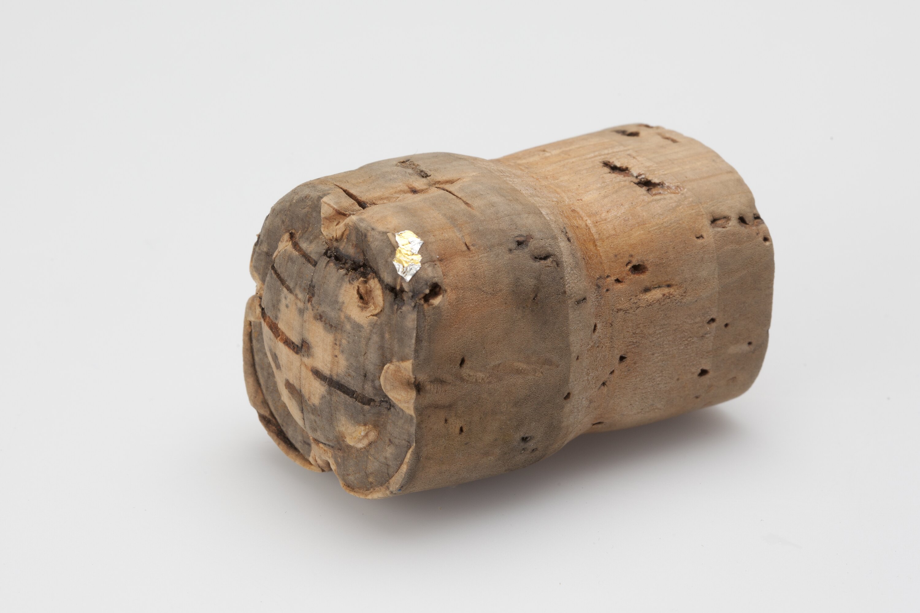 Cork found in the left pocket of a suit, purchased in Wauchope New South Wales in 1944. The suit was worn by Albanian immigrant Pandi Thomas for his wedding to Artemissia Hari, which took place in Bagnoo New South Wales in 1944. Pandi and Artemissia's marriage was arranged through the business contacts of Pandi's brother, who introduced Pandi to Artemissia's father. After Pandi and Artemissia's father had discussed the marriage prospect, the couple met and Artemissia agreed to the marriage, as she was culturally expected to do. They were married in a Greek Orthodox wedding ceremony at Artemissa's family farm house with a priest brought in from Sydney. The couple honeymooned in Kempsey, New South Wales and then returned to Shepparton, where Pandi was living with his brother. They had five children and died within seven weeks of each other in 1995.