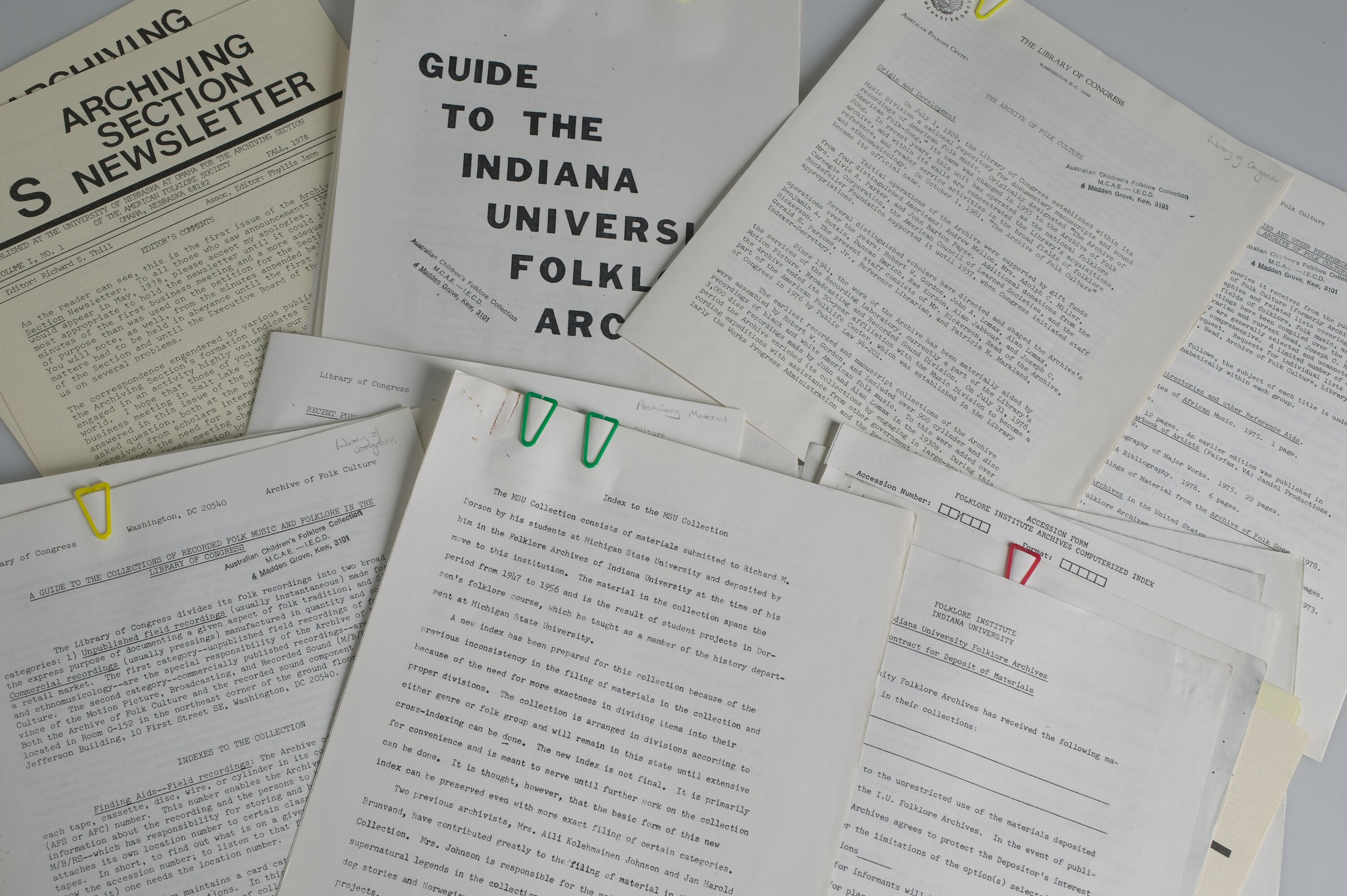 Archive series (originally numbered 7) containing information relating to children's folklore, focussing on archiving, folklore courses, conferences, bibliographies, etc. Parent record includes visitor book to ACFC 1984-1999.