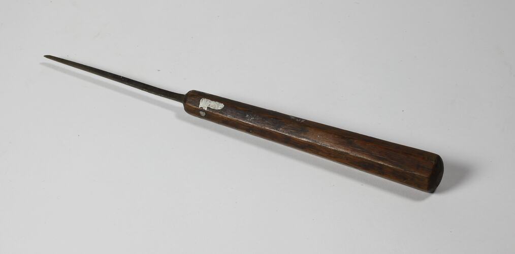 This object is part of a collection of hand tools and materials, related to the trades of shipwrighting and sailmaking. Shipwrights and sailmakers were a very important trade for the construction and maintenance of water transport, such as paddlesteamers and sailing ships. The early colony of Victoria relied on the skills of these trades for construction of new vessels as well as their ongoing maintenance.