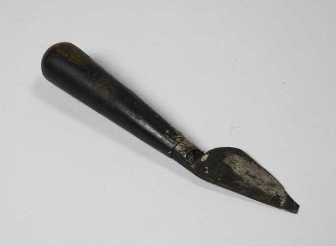 This object is part of a collection of hand tools and materials, related to the trades of shipwrighting and sailmaking. Shipwrights and sailmakers were a very important trade for the construction and maintenance of water transport, such as paddlesteamers and sailing ships. The early colony of Victoria relied on the skills of these trades for construction of new vessels as well as their ongoing maintenance.