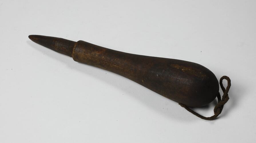 This object is part of a collection of hand tools and materials, related to the trades of shipwrighting and sailmaking. Shipwrights and sailmakers were a very important trade for the construction and maintenance of water transport, such as paddlesteamers and sailing ships. The early colony of Victoria relied on the skills of these trades for construction of new vessels as well as their ongoing maintenance.