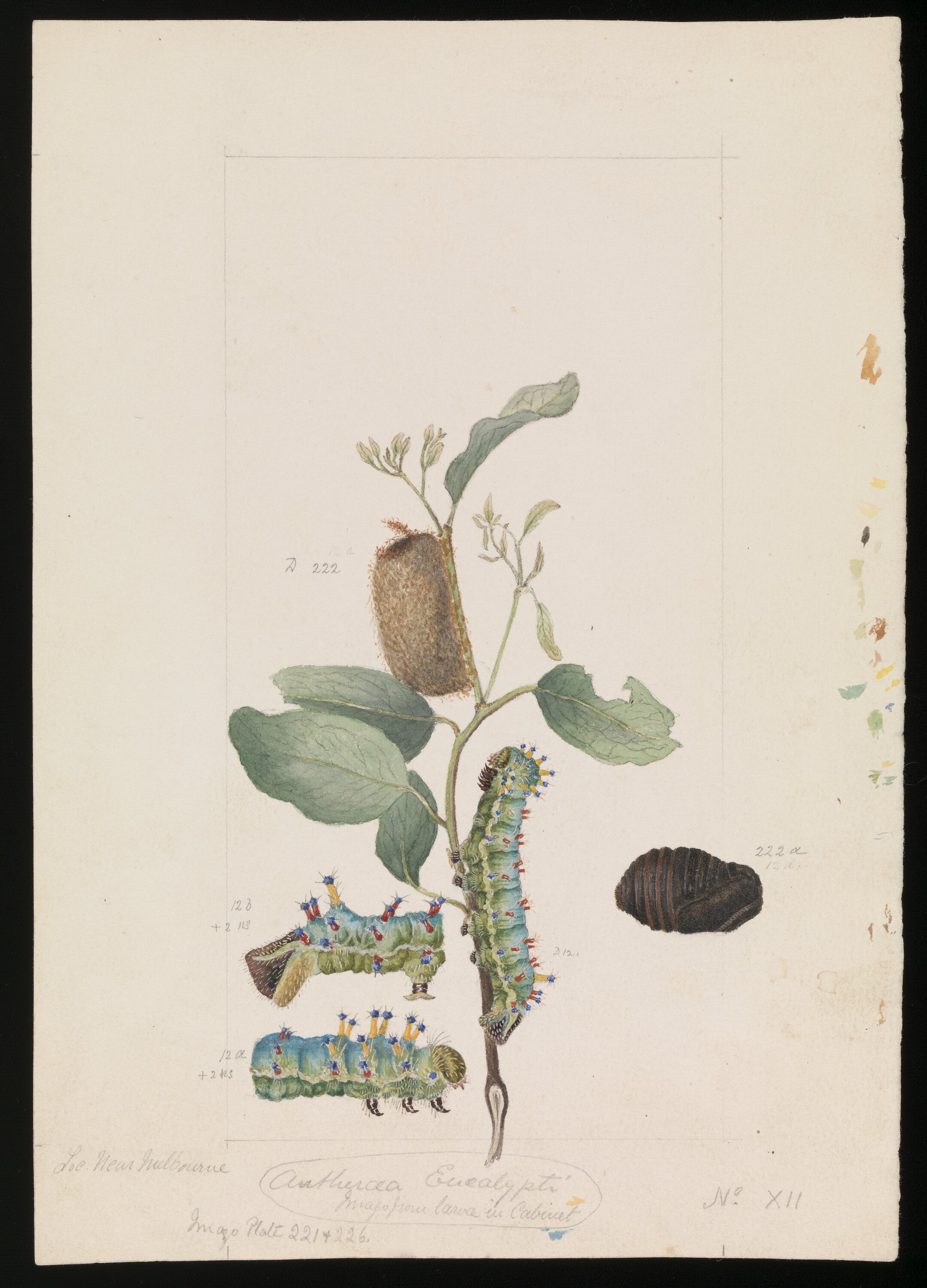 No.XII / Anthyraea Eucalypti / Loc. Near Melbourne / image from larvae in Cabinet