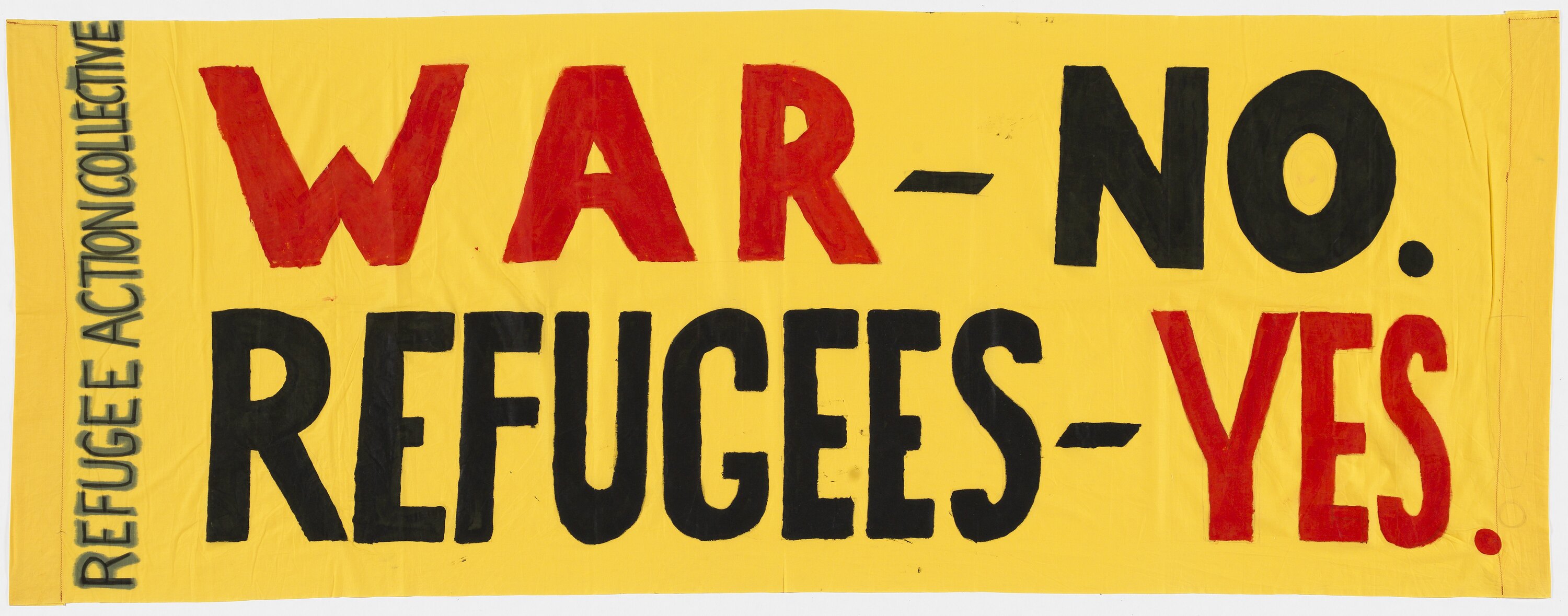 Text: REFUGEE ACTION COLLECTIVE / WAR - NO./ REFUGEES - YES.