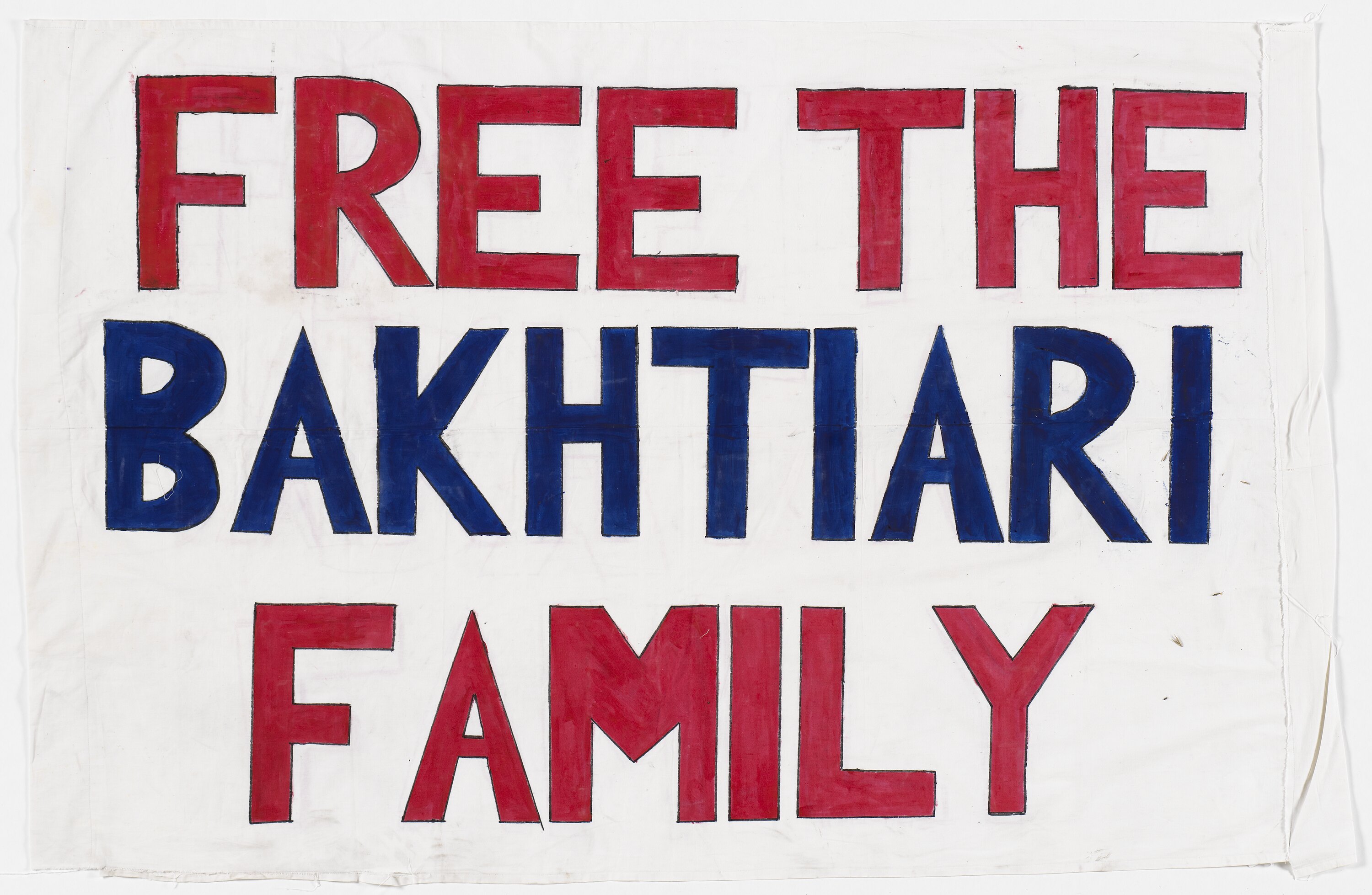 Text: FREE THE/BAKHTIARI/FAMILY.