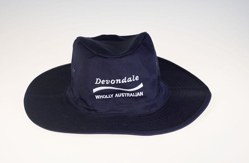 Embroidered text: Devondale / WHOLLY AUSTRALIAN.