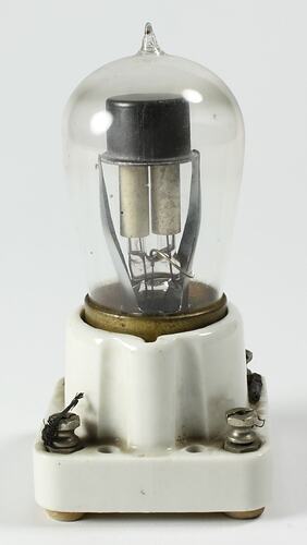 Cold cathode full wave rectifier intended for battery eliminators. Manufactured by Raytheon Manufacturing Company, Cambridge, Massachusetts, USA.