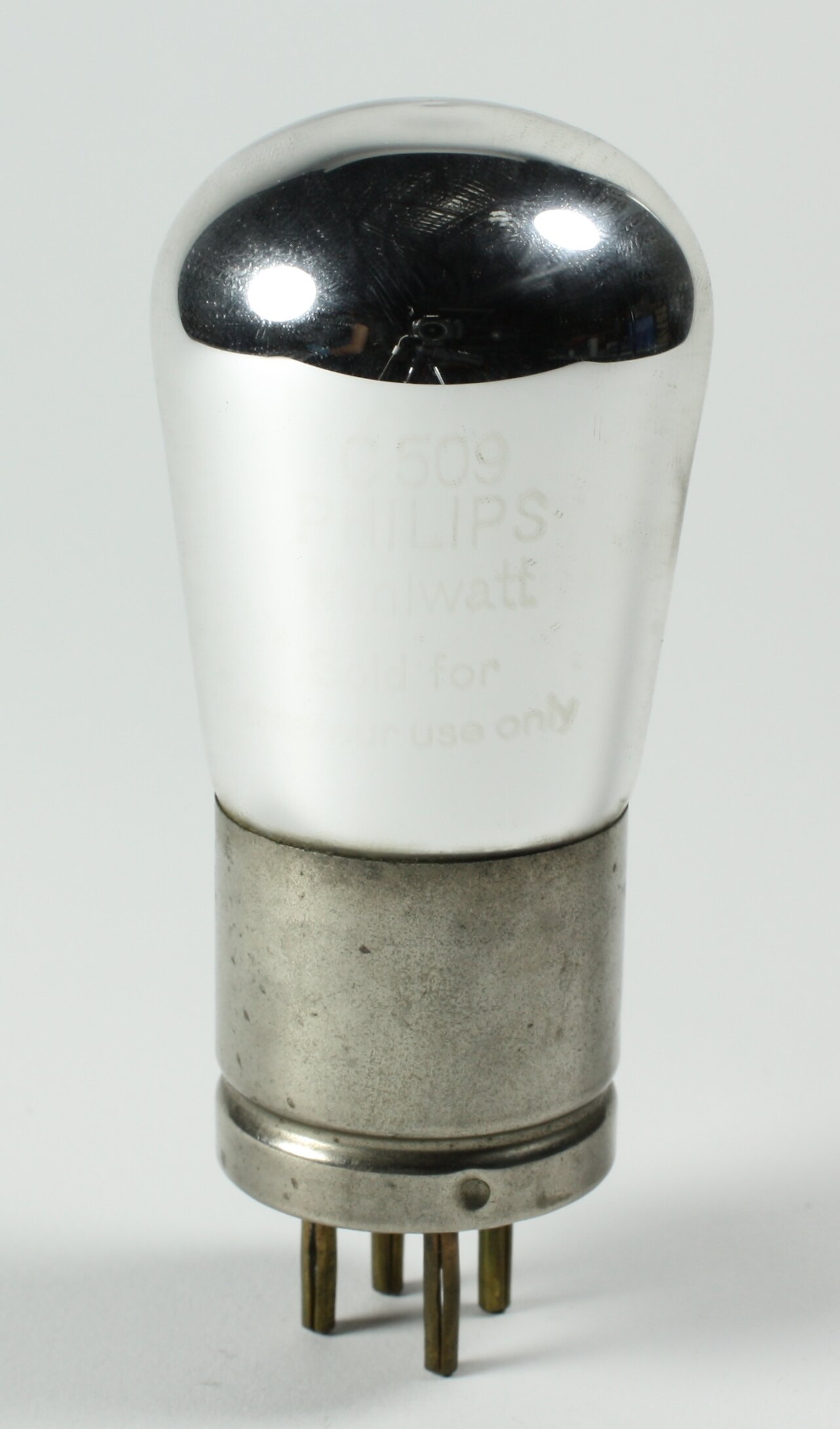 On bulb: " C509 / Philips / Miniwatt / Sold for / amateur use only ", " 4.5-5.3V / 20-120V / Made in Holland / 139 "