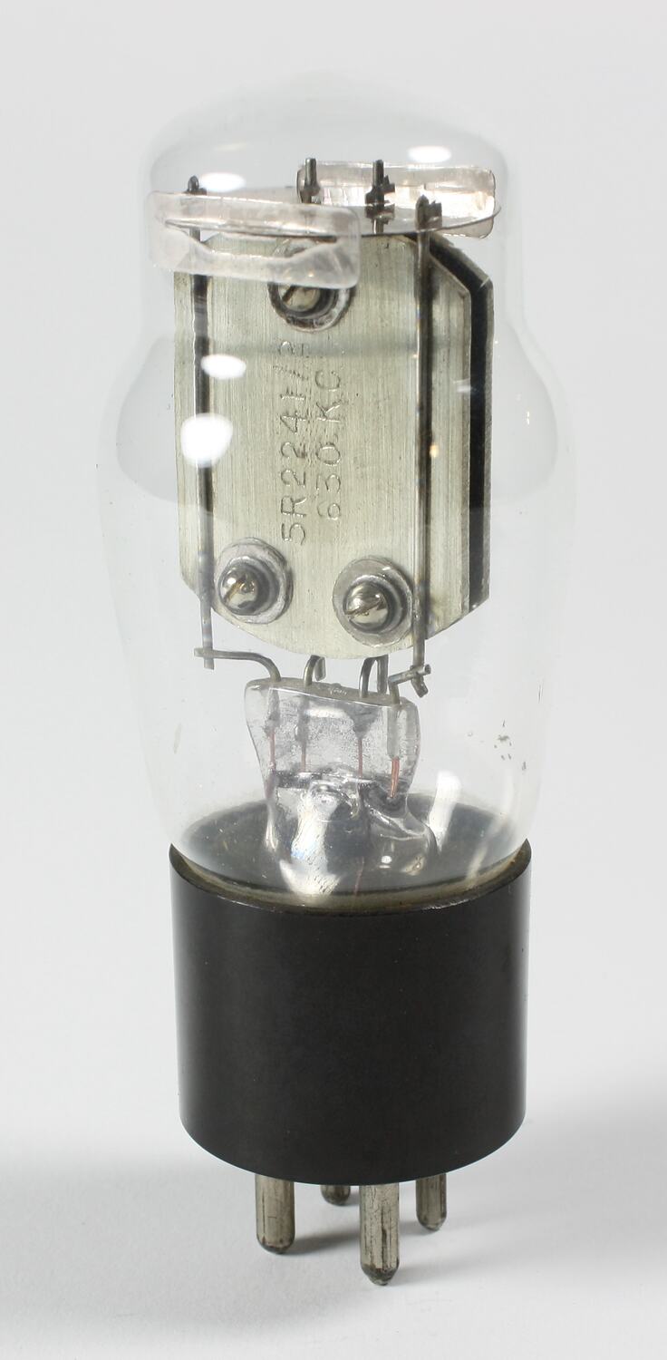 On metal inside bulb: " 5R2241/2 / 630 KC " On base: " LICENSED ONLY TO EXTENT / INDICATED ON CARTON/1 over 4 (excise mark) " Accompanying note: COMMUNICATIONS Crystal, vacuum packed, in valve envelope, 630 kHz probably 1950s