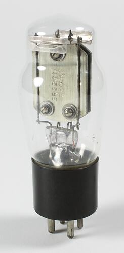 Shouldered glass bulb mounted on a four pin UX style base.