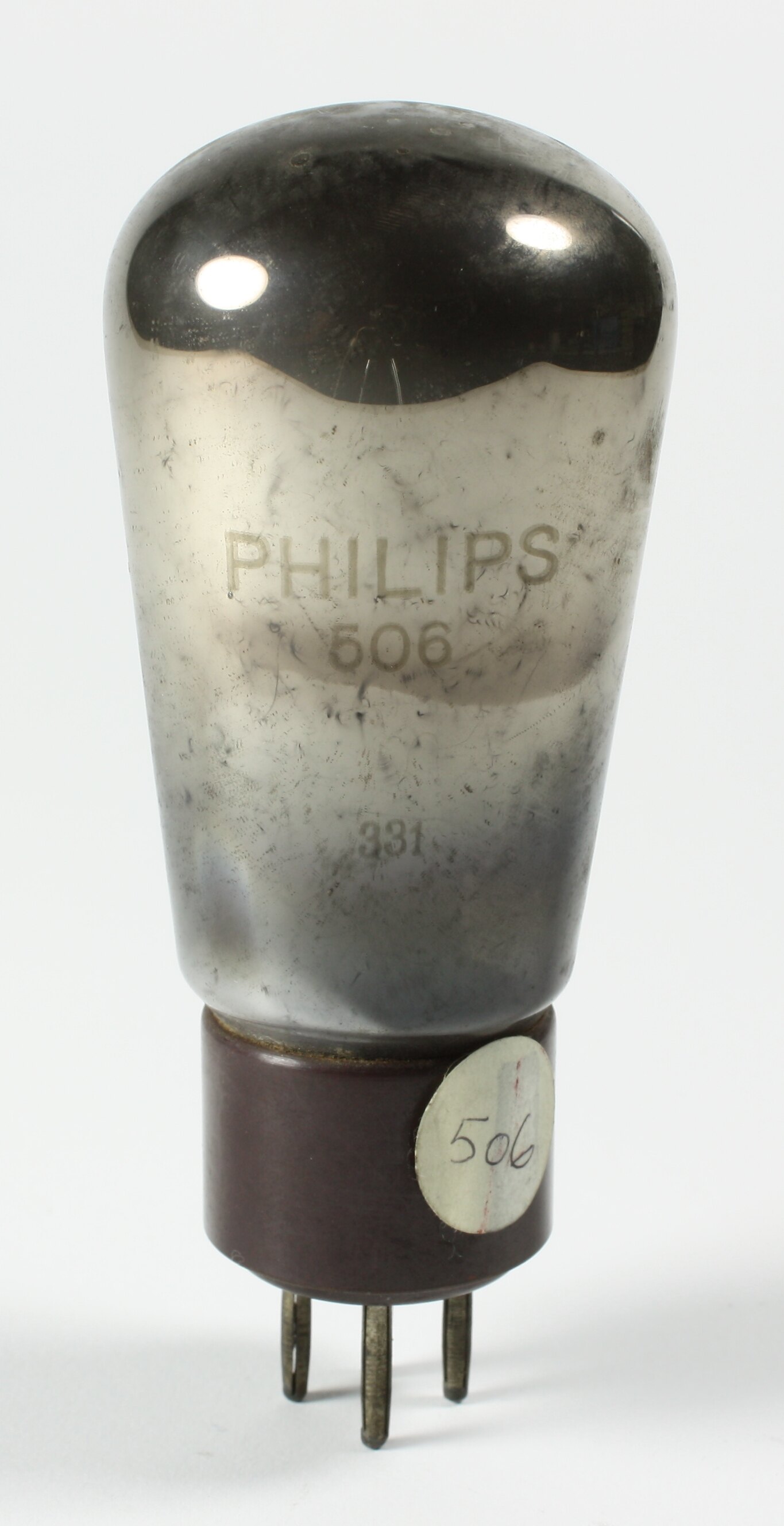 On bulb: " PHILIPS / 506 / 331 ", " Sold for / amateur use only / Made in Holland " On white sticker on base: "506"