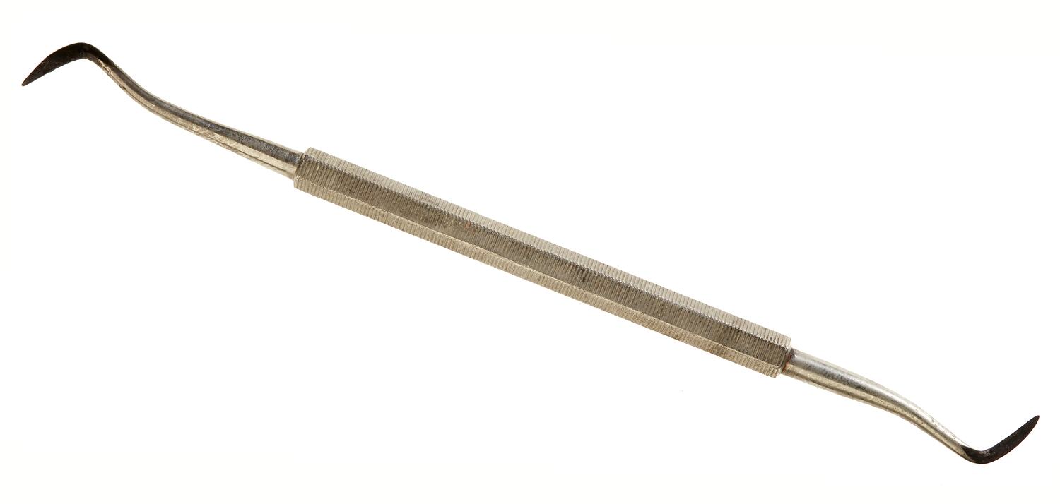 Dual ended stainless steel dental scaler, manufactured, circa 1920.