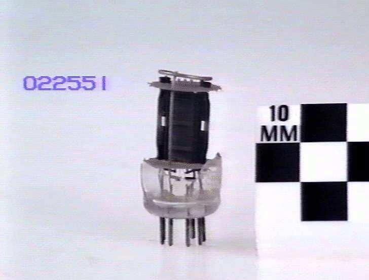 Triode designed for use at frequencies up to about 200 MHz. Manufacturer: Radio Corporation of America, Harrison, NJ, USA. Millions of this type made in World War Two (1939 - 1945). Used mainly in airborne radar, in particular for identification purposes (friend or foe determination (IFF).