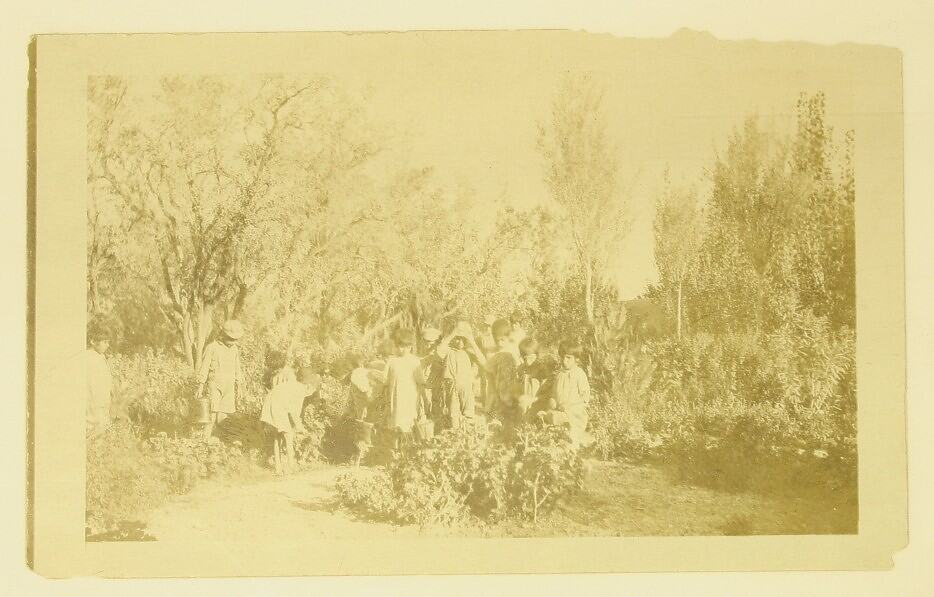 Sepia toned photograph, dating from World War I, of a group of Arab children.