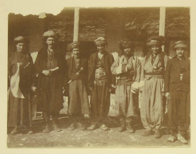 Photograph, dating from World War I, of a group of Kurdish men in traditional clothing.