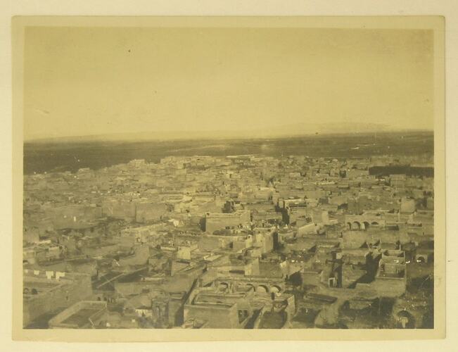 Photograph, dating from World War I, showing an elevated view of the city Mosul, looking towards the ancient city of Ninevah, Iraq.