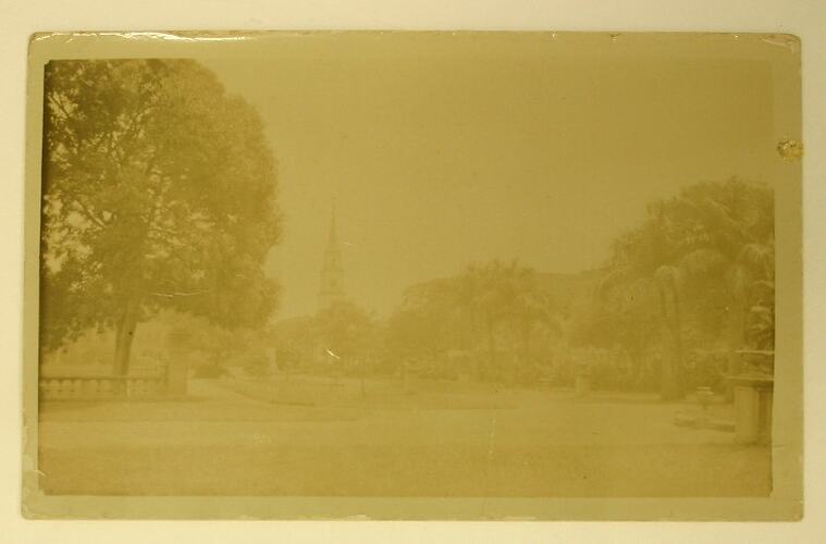 Part of a collection of World War I photographs associated with the service of Lionel Knox Trezise (service no. 14340), father of the donor John Trezise. Lionel was a 'reliving postmaster and telegraphist' when he enlisted on 22 March 1916. He was placed in the 1st Australian Wireless Signal Squadron as a sapper, serving with the Mesopotamia Expeditionary Force. During his service he apparently took photographs in India, Sri Lanka and Mesopotamia (Iraq and neighbouring regions). After returning to Australia in 1919 he married and became a public servant. He died in 1972. Lionel's brother John Gordon (Jack) Trezise also served in World War I (service no. 5105). He enlisted on 2 March 1916 while a 26-year-old shop assistant in Broken Hill, and was killed in action in France on 1 June 1918.
