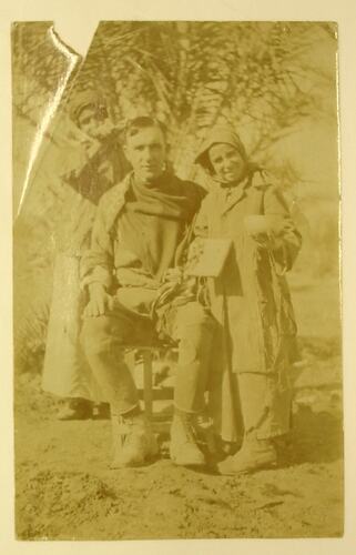 One in a series of photographs from World War I in Egypt, Mesopotamia and Europe associated with service by members of the Tresize family. Donation information identifies Francis Trezise and Jack (John) Trezise - although their relationship to the collection is unclear, and they were not brothers. Francis Henry Trezise (service no. 1744) enlisted on 5 May 1915 as a 21-year-old labourer. He had been living in Granya, north-eastern Victoria; his mother Ellen was his next of kin. He survived the war, although was wounded in France and suffered illness. John Gordon Trezise (service no. 5105) enlisted on 2 March 1916 a 26-year-old shop assistant in Broken Hill; his next of kin was his mother Annie Jane. He was killed in action in France on 1 June 1918.