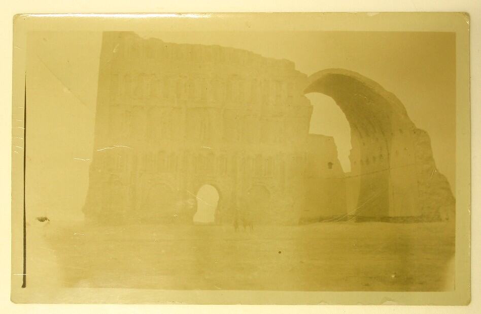 Postcard, dating from World War I, showing the Arch of Etesiphon (Ctesiphon) in Iraq, part of a ruined palace.