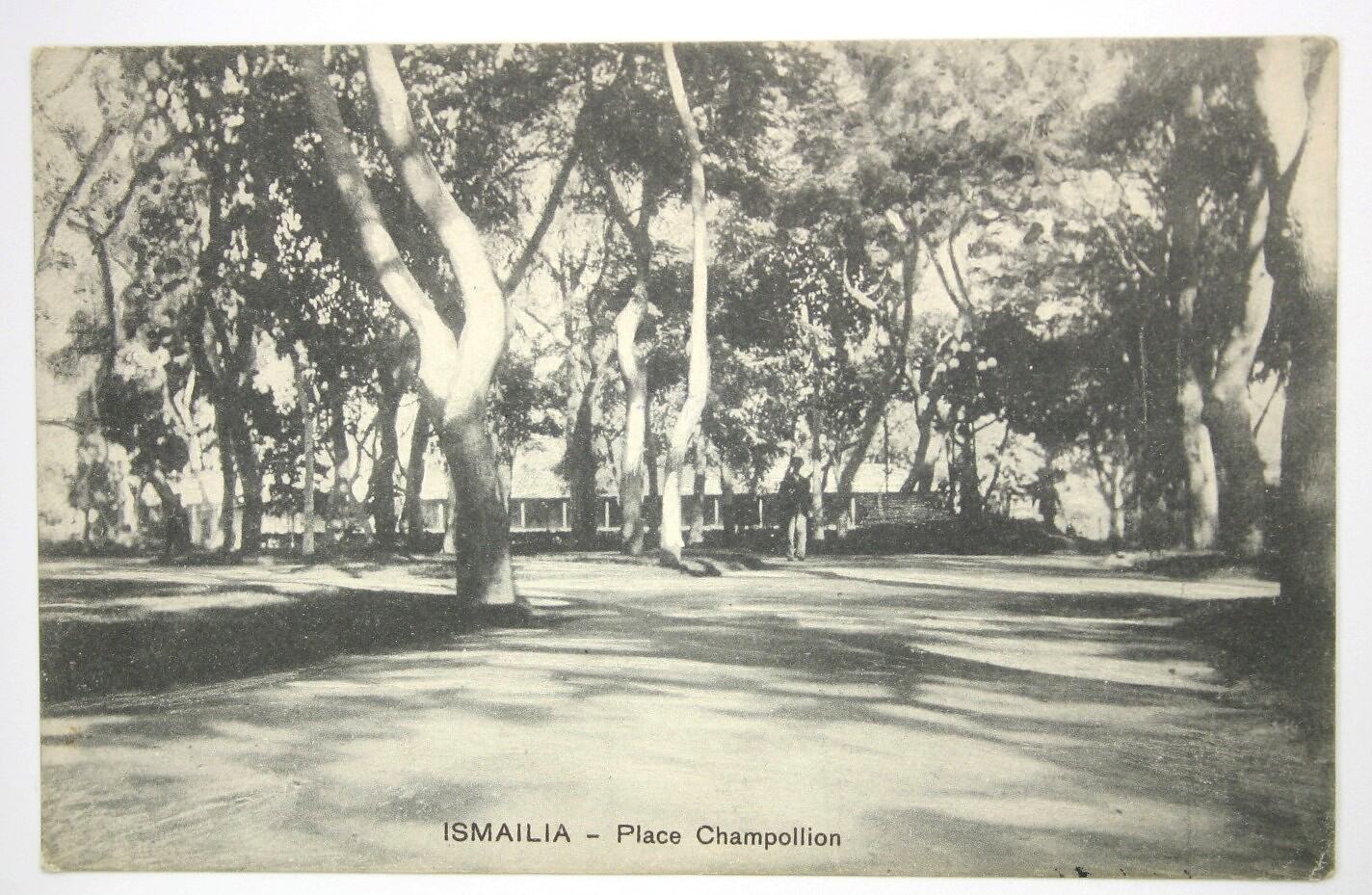 Postcard titled 'Ismailia - Place Champollion', dating from World War I.