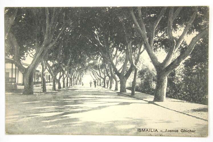 Postcard titled "'smailia - Avenue Ghichar', dating from World War I.