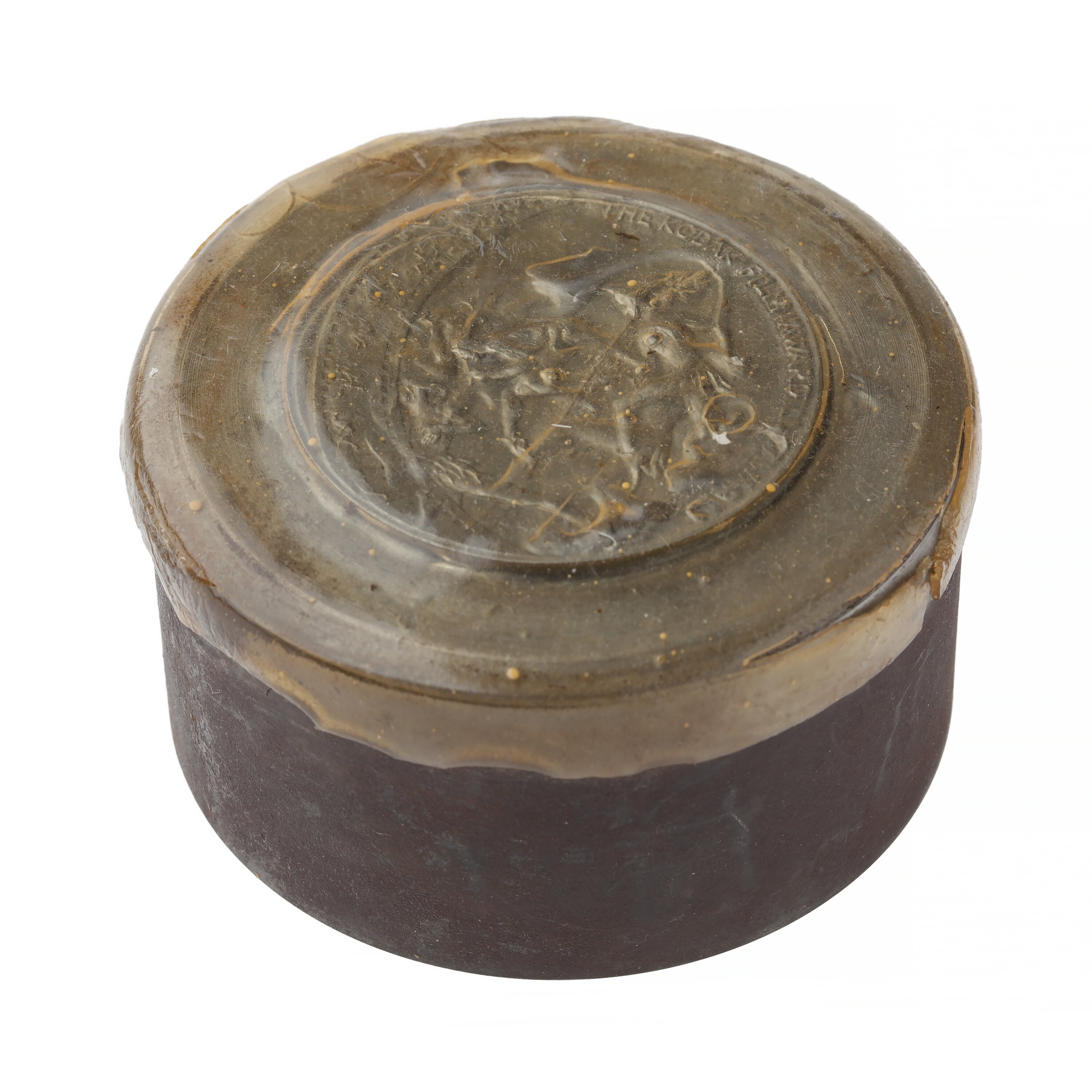 Metal cylinder with relief of design for obverse of medal. Wax coating.