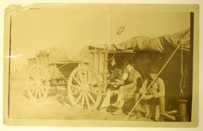 Part of a collection of World War I photographs associated with the service of Lionel Knox Trezise (service no. 14340), father of the donor John Trezise. Lionel was a 'reliving postmaster and telegraphist' when he enlisted on 22 March 1916. He was placed in the 1st Australian Wireless Signal Squadron as a sapper, serving with the Mesopotamia Expeditionary Force. During his service he apparently took photographs in India, Sri Lanka and Mesopotamia (Iraq and neighbouring regions). After returning to Australia in 1919 he married and became a public servant. He died in 1972. Lionel's brother John Gordon (Jack) Trezise also served in World War I (service no. 5105). He enlisted on 2 March 1916 while a 26-year-old shop assistant in Broken Hill, and was killed in action in France on 1 June 1918.