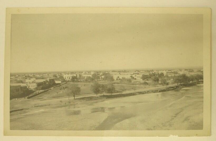 Black and white photograph, dating from the World War I, showing an elevated view of a city in the Middle East.