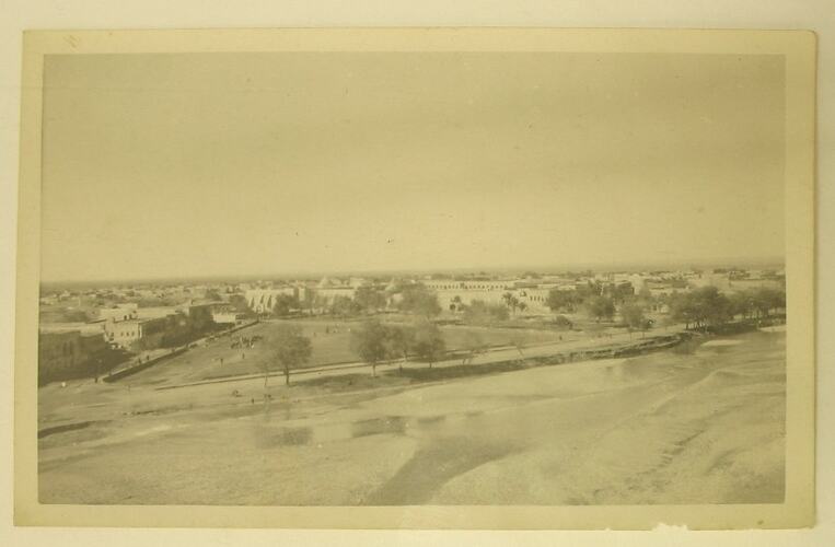 Part of a collection of World War I photographs associated with the service of Lionel Knox Trezise (service no. 14340), father of the donor John Trezise. Lionel was a 'reliving postmaster and telegraphist' when he enlisted on 22 March 1916. He was placed in the 1st Australian Wireless Signal Squadron as a sapper, serving with the Mesopotamia Expeditionary Force. During his service he apparently took photographs in India, Sri Lanka and Mesopotamia (Iraq and neighbouring regions). After returning to Australia in 1919 he married and became a public servant. He died in 1972. Lionel's brother John Gordon (Jack) Trezise also served in World War I (service no. 5105). He enlisted on 2 March 1916 while a 26-year-old shop assistant in Broken Hill, and was killed in action in France on 1 June 1918.