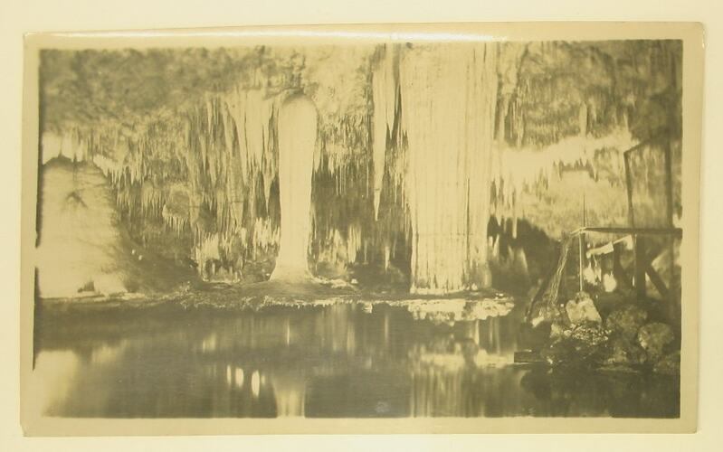 Photograph, dating from World War I, of stallictites in a cave.