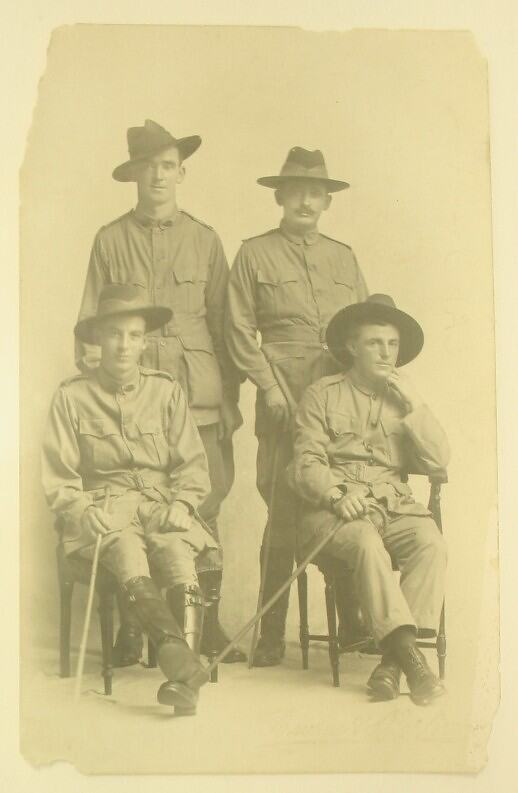 Black and white postcard, dating from World War I, of a portrait of men in military uniform.