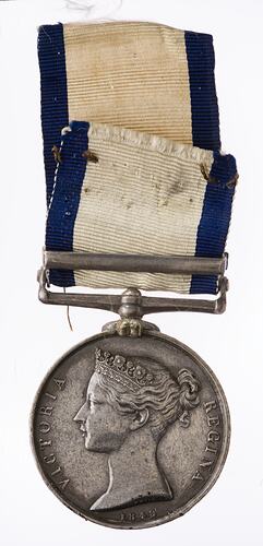 The Naval General Service medal was introduced in 1848 with the intention that surviving naval personell from battles which occurred between 1793 and 1815 would be elegable. The dates were later extended to actions up until 1840 and it was decided that, if an applicant died between the date of application for the medal and its issue, their medal would be awarded to their next-of-kin. The closing date for application was 1 May 1851. 231 bars were sanctioned for this medal (although there were no applicants for ten of these).