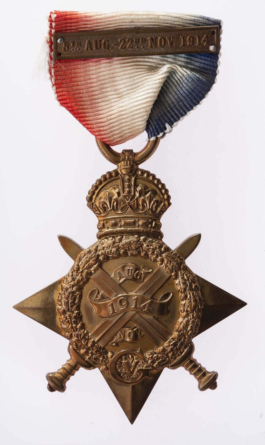 This medal was approved in 1917 to be awarded to those who had served in France or Belgium between 5 August 1914 and midnight 22-23 November 1914. Those who had been under fire received a bar bearing these dates. These included those who took part in the retreat from Mons, which has led to this medal being given the nick-name the 'Mons Star'.
