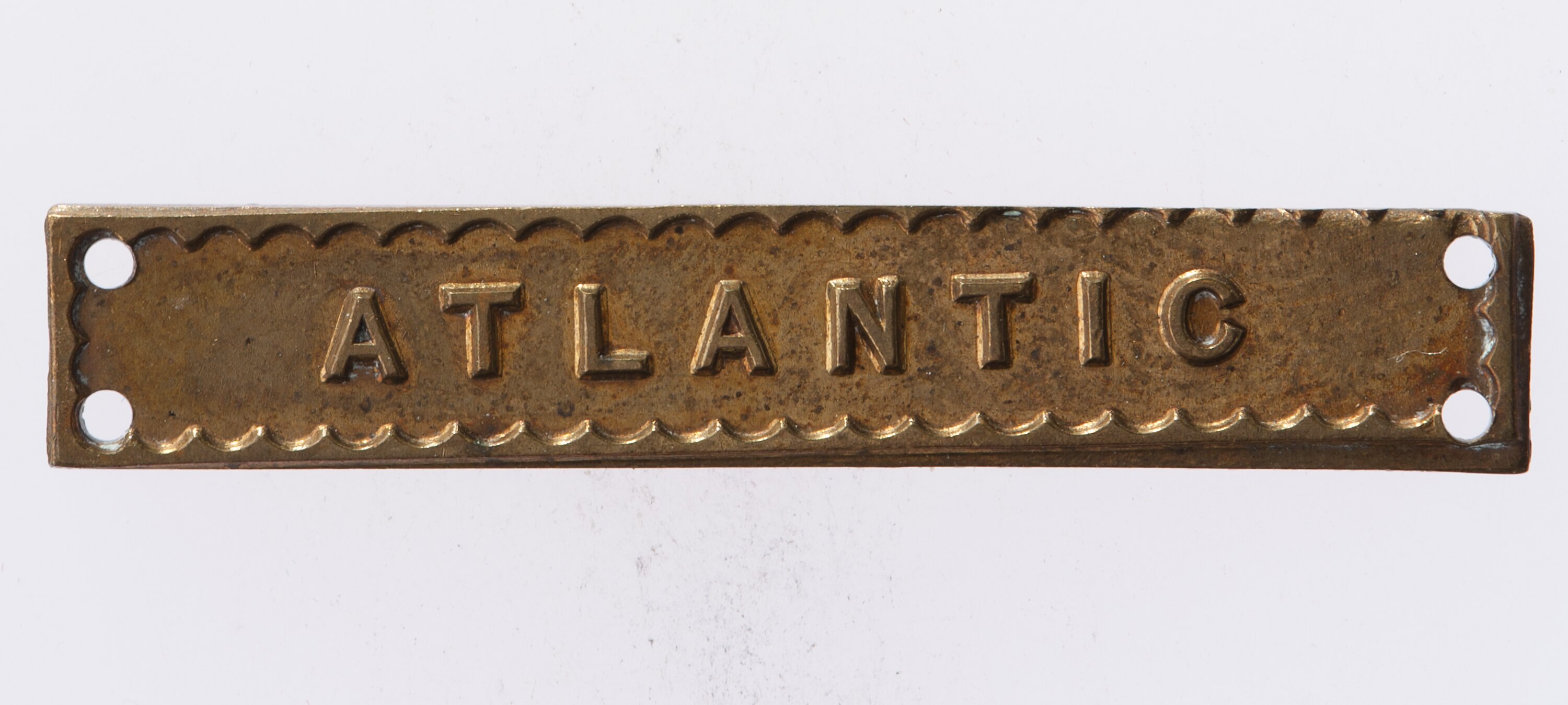 A rectangular bronze bar with the words: ATLANTIC. It has a small hole in each corner for sewing to the ribbon of The Air Crew Europe Star.