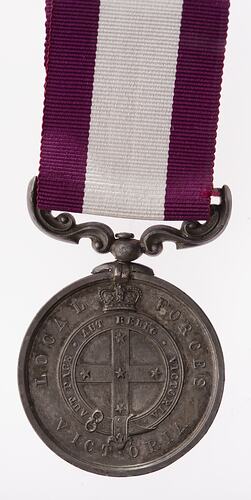 Other Details: The Victorian Volunteer Forces were the local regiments who undertook the naval and military defence of the colony of Victoria. After Federation in 1901, this medal became obsolete.
