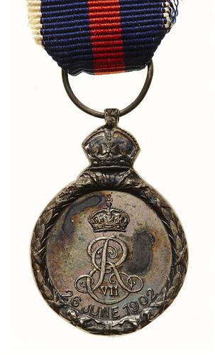 Coronation of King Edward VII (miniature) medal, 1902. Part of medal group (Miniatures) relating to Boer War and World War I awarded to Rev. O.W. Birch.
