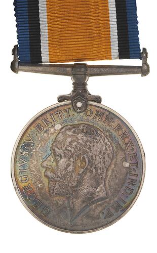 Obverse: 'GEORGIVS V BRITT: OMN: REX ET IND: IMP:' / 'B.M.' (Bertram MacKennal). Reverse : '1914 1918'. Edge: 'COLONEL J.H. BRUCHE A.I.F.'.