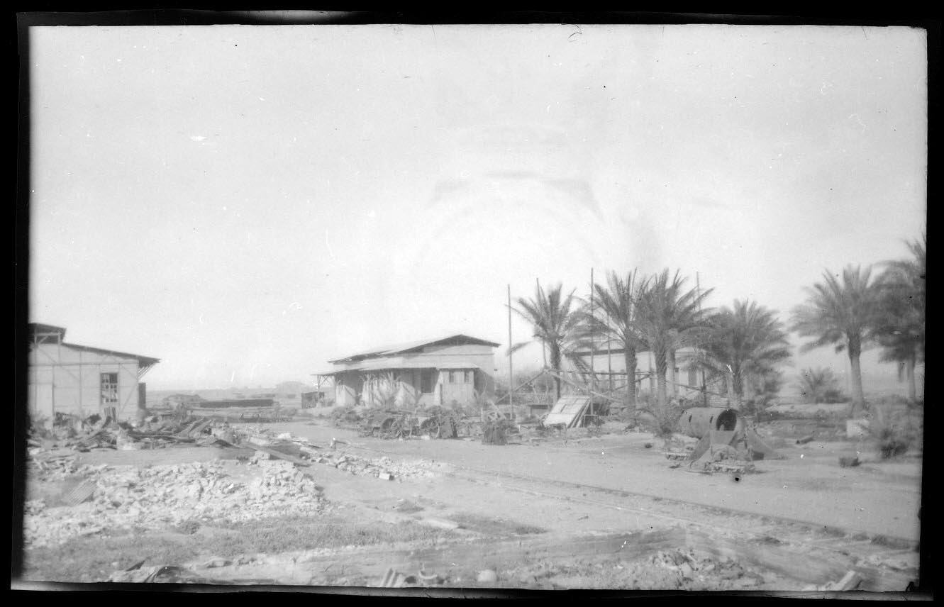 Black and white negative taken in 1914-1919, during World War I, identified as a 'German Railway' in Baghdad.