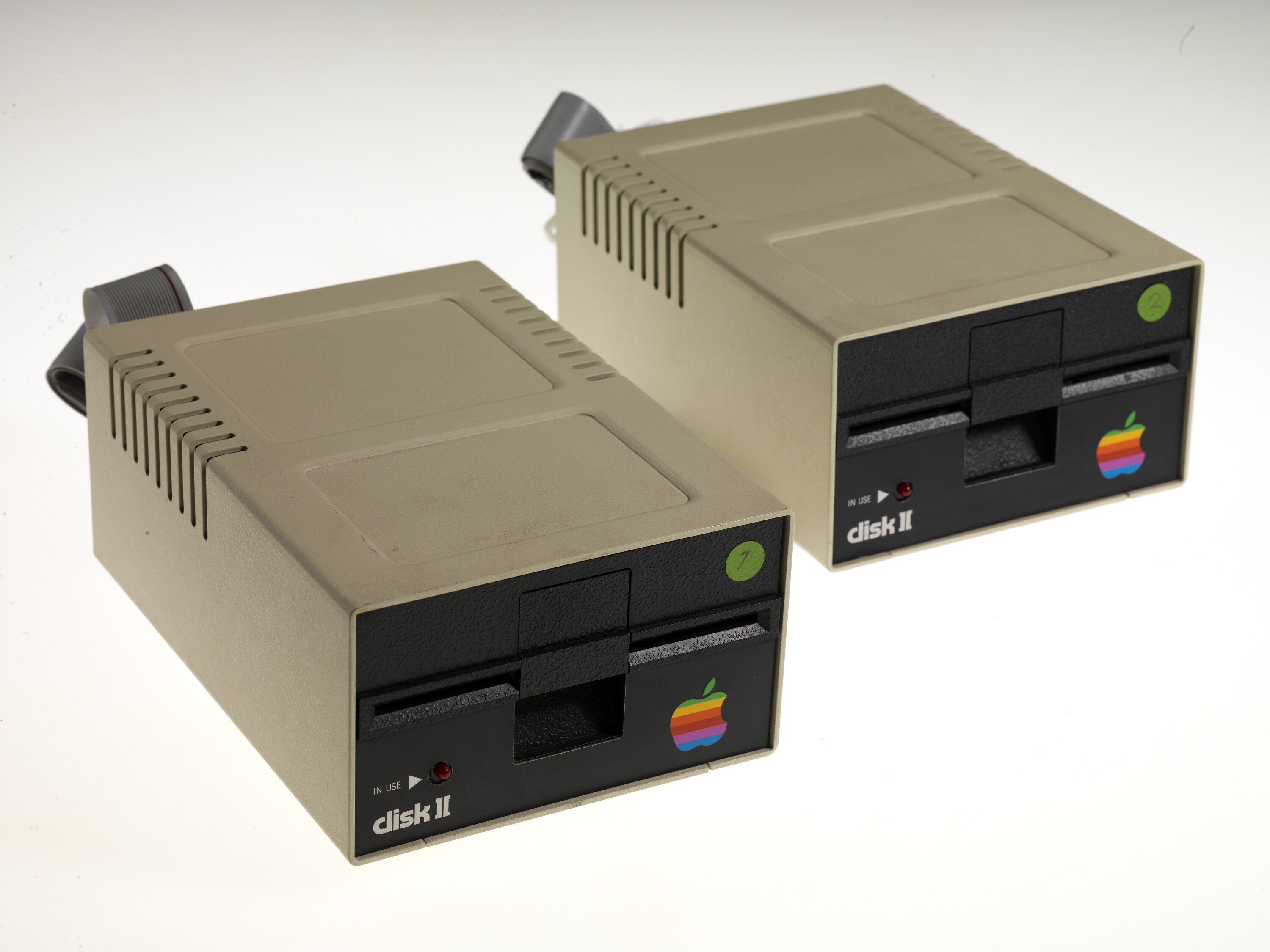 One of a pair of Disk ][ 5.25 inch external floppy disk drives for use with the Apple II computer.