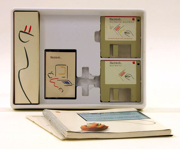 Software package containing MacWrite and MacPaint and System disks, manuals and other items.