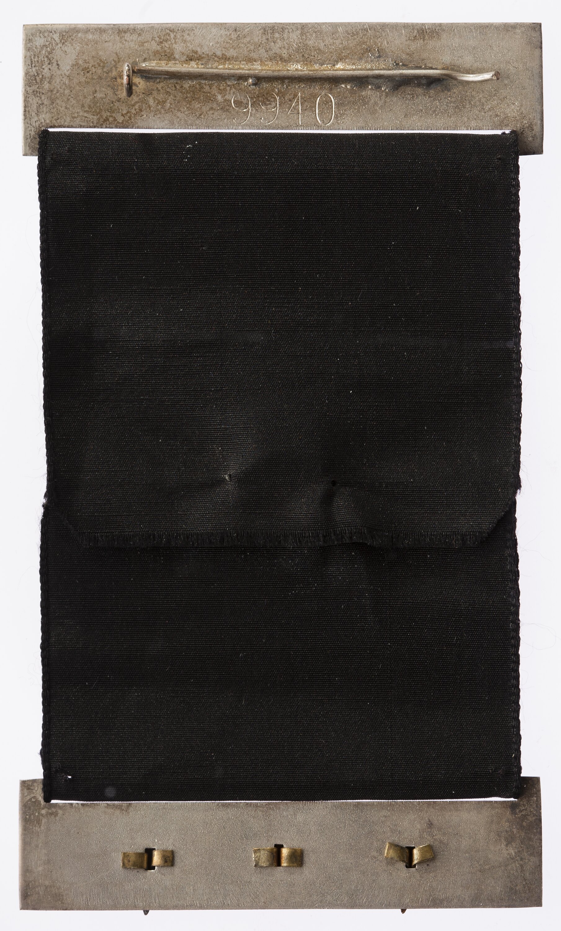 Back of top bar stamped '9940' below a pin for attaching to clothing.