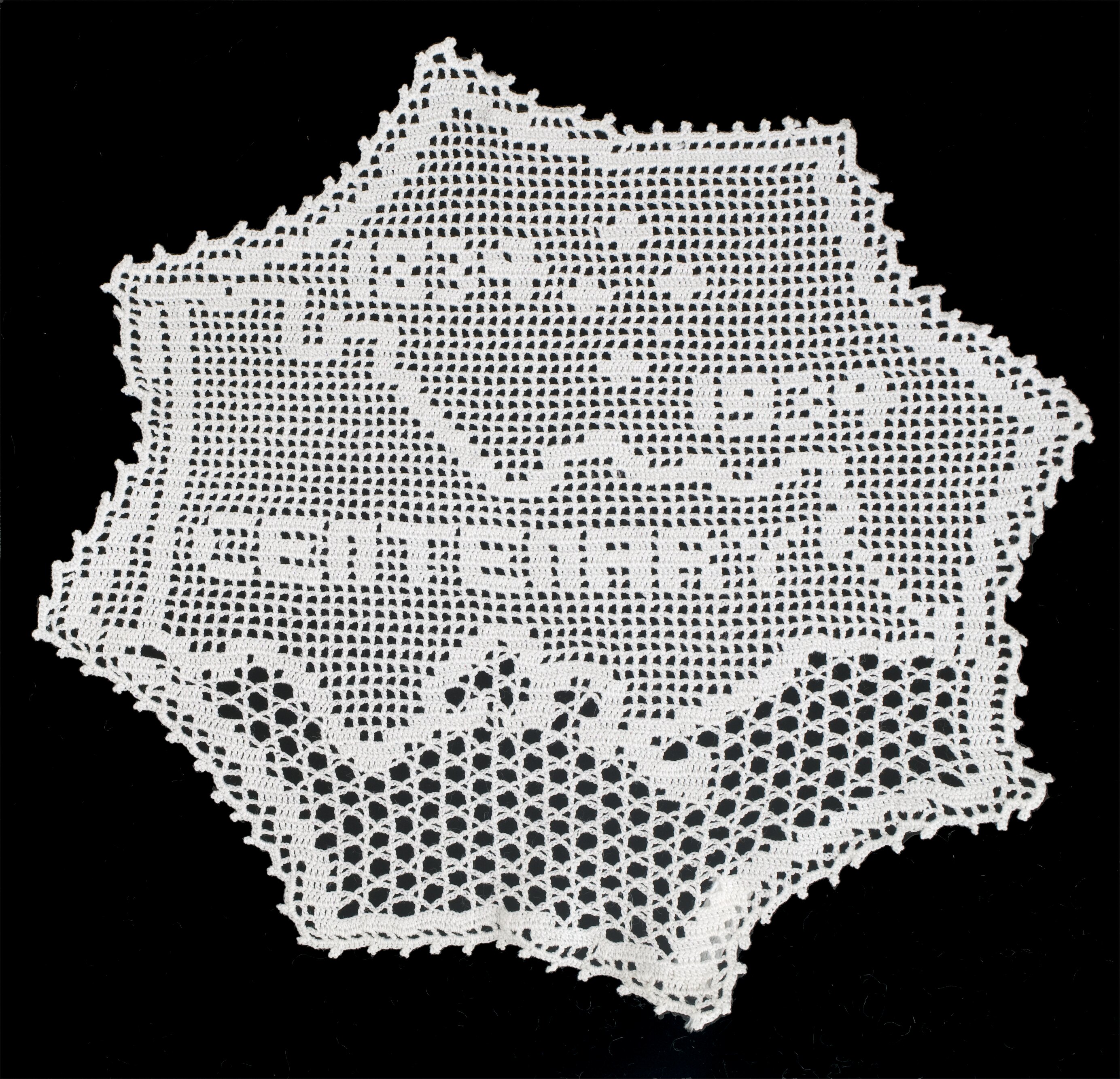 Crocheted on front: 1834 / 1934 / CENTENARY