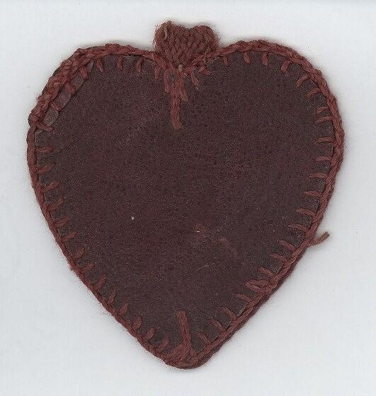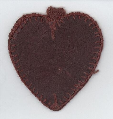 Heart-shaped pouch from a collection of objects belonging, to or relating to, Private Albert Edward Kemp, who served in France and Belgium in World War I and was killed in battle in 1917.