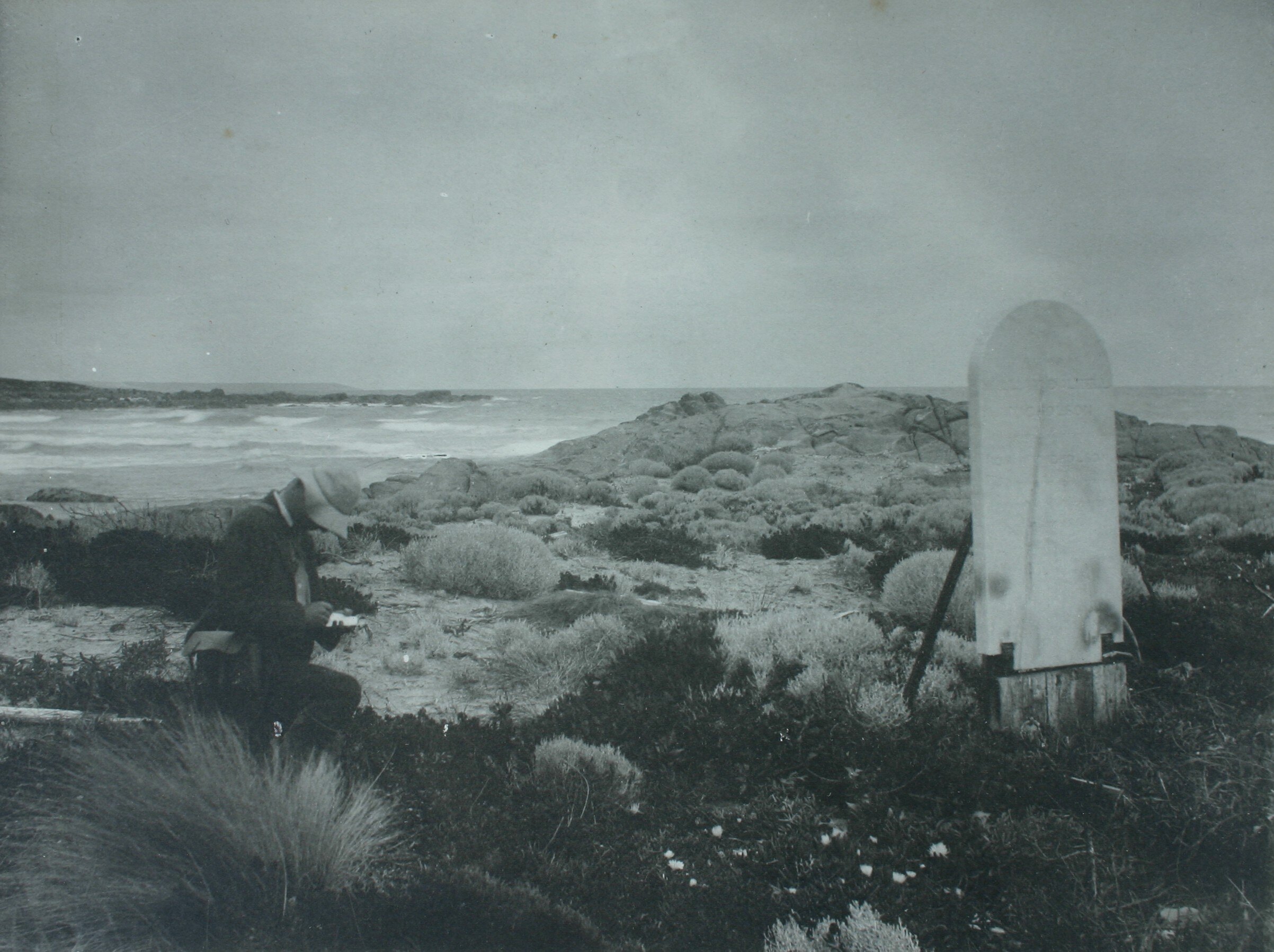 One of thirty-two black and white photographs in an album [two are loose] taken by A J Campbell during a Field Naturalists' Club of Victoria expedition to King Island. The album also includes maps of King Island in the inside front cover and back page and numerous newspaper clippings relating to the expedition. One of the newspaper clippings, written by one of the members of the party, documents the mission of the expedition thus: 'It is our intention, before the introduction of numerous foreign plants and animals rendered it impossible to do so, to ascertain as precisely as we could in the short time at our disposal the fauna and flora indigenous to the island.'
