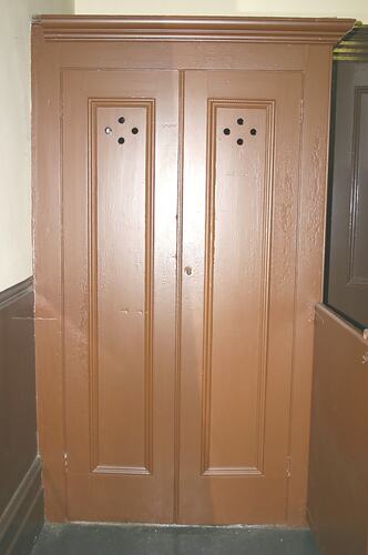 Built-in, two door cupboard in the clerk's office at the former MMBW Spotswood Sewerage Pumping Station. This office may originally have been used as the superintendent.