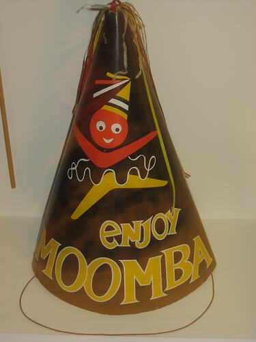 This hat was produced by the Melbourne Moomba Festival in the late 1960s to be given away to children along the Moomba Parade route.