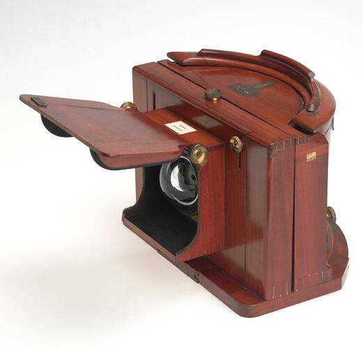 The Museum holds another, larger Sutton panoramic camera (ST 029632), which was used by the pioneering fieldwork photographer Richard Daintree during the Victorian Land Survey of 1864.
