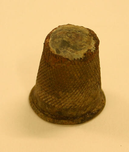 This metal thimble was excavated at the Commonwealth Block site between 1988 and 2003.