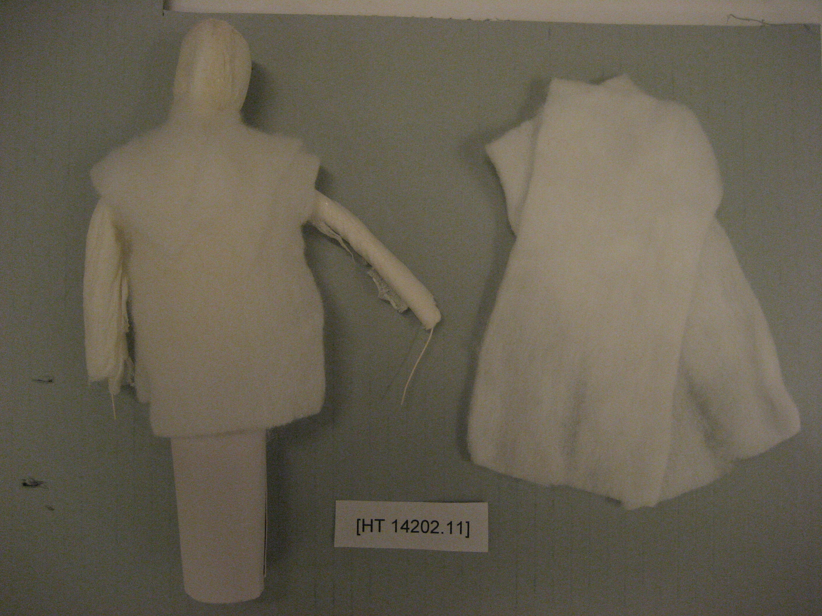 Japanese Shimotsuke paper doll in a series of 15 production steps. This is part 11 in the process. It was created by Masumi Hiraga Jackson in 2007 to demonstrate and document the process, step by step, of making a Shimotsuke doll.