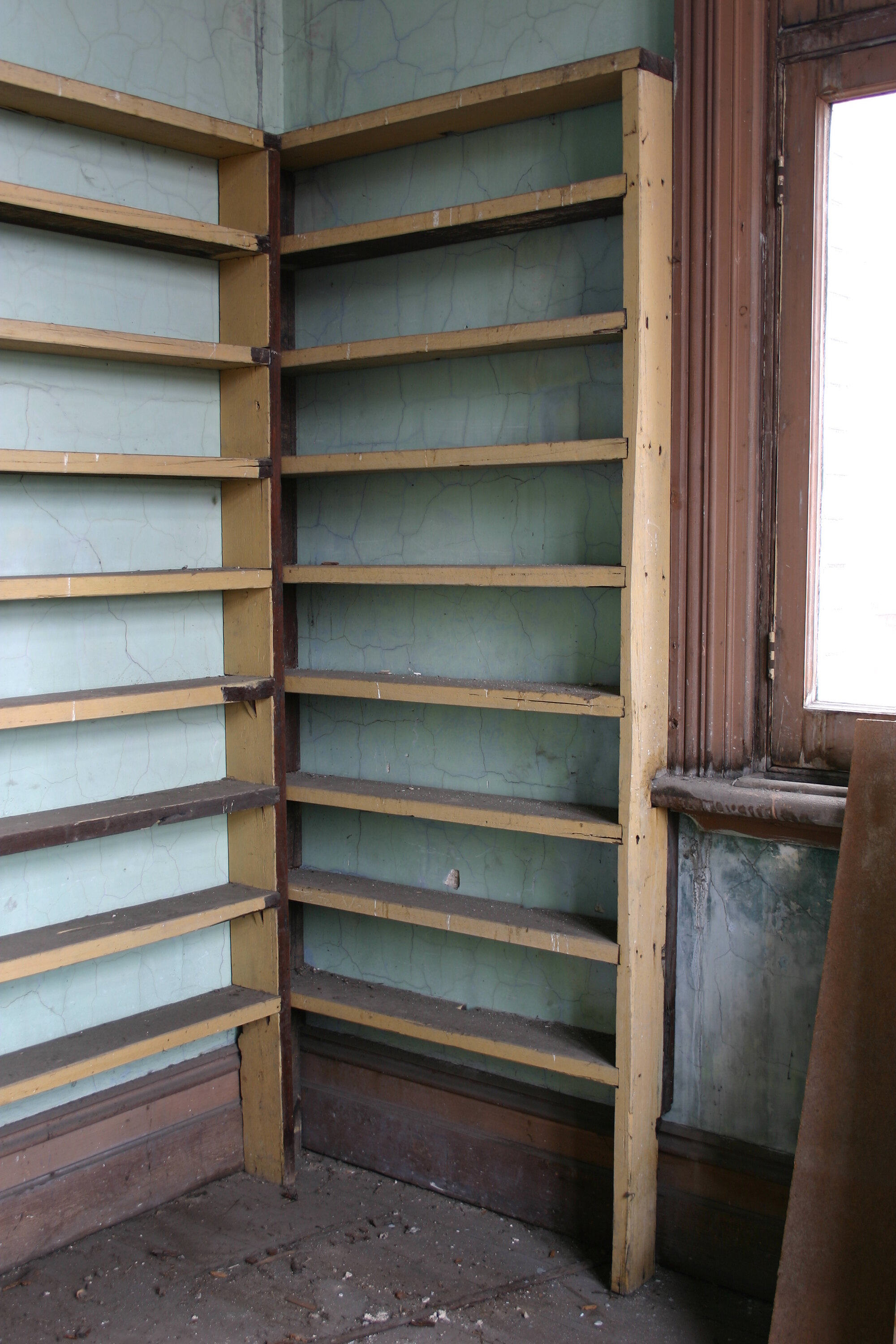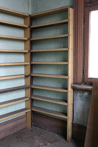 Eight shelf built-in unit. Located in the tower of the North Engine Room. Believed to have been used for storing core samples taken during inspection works.