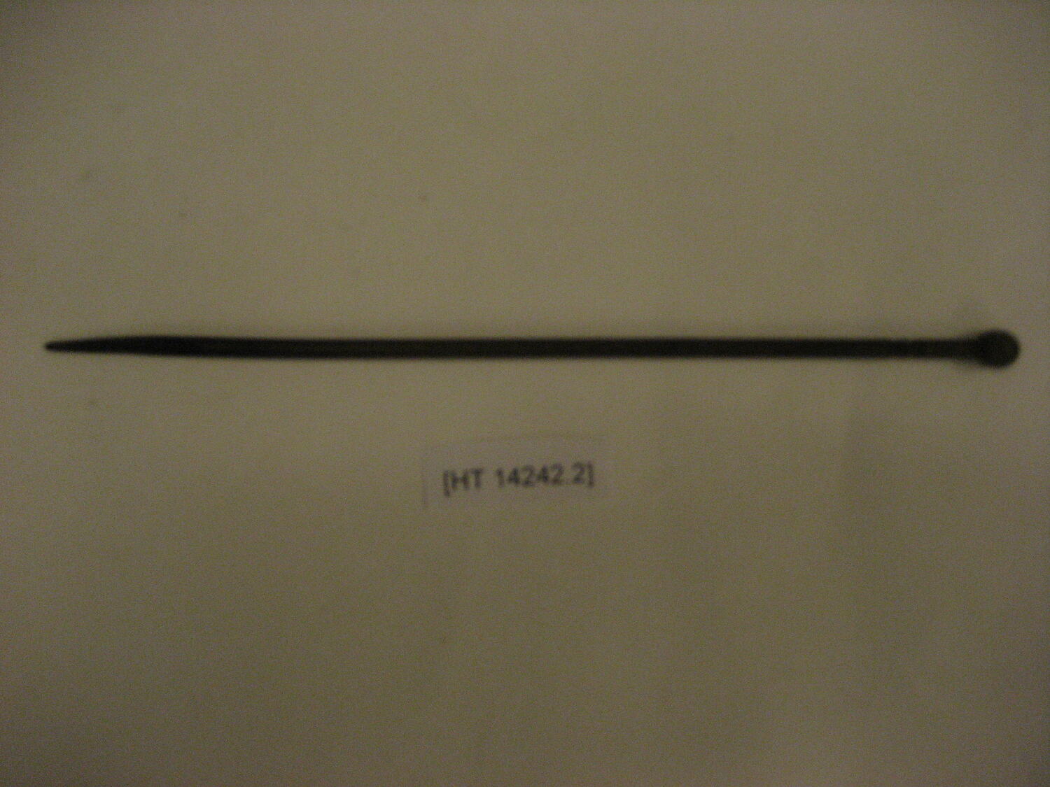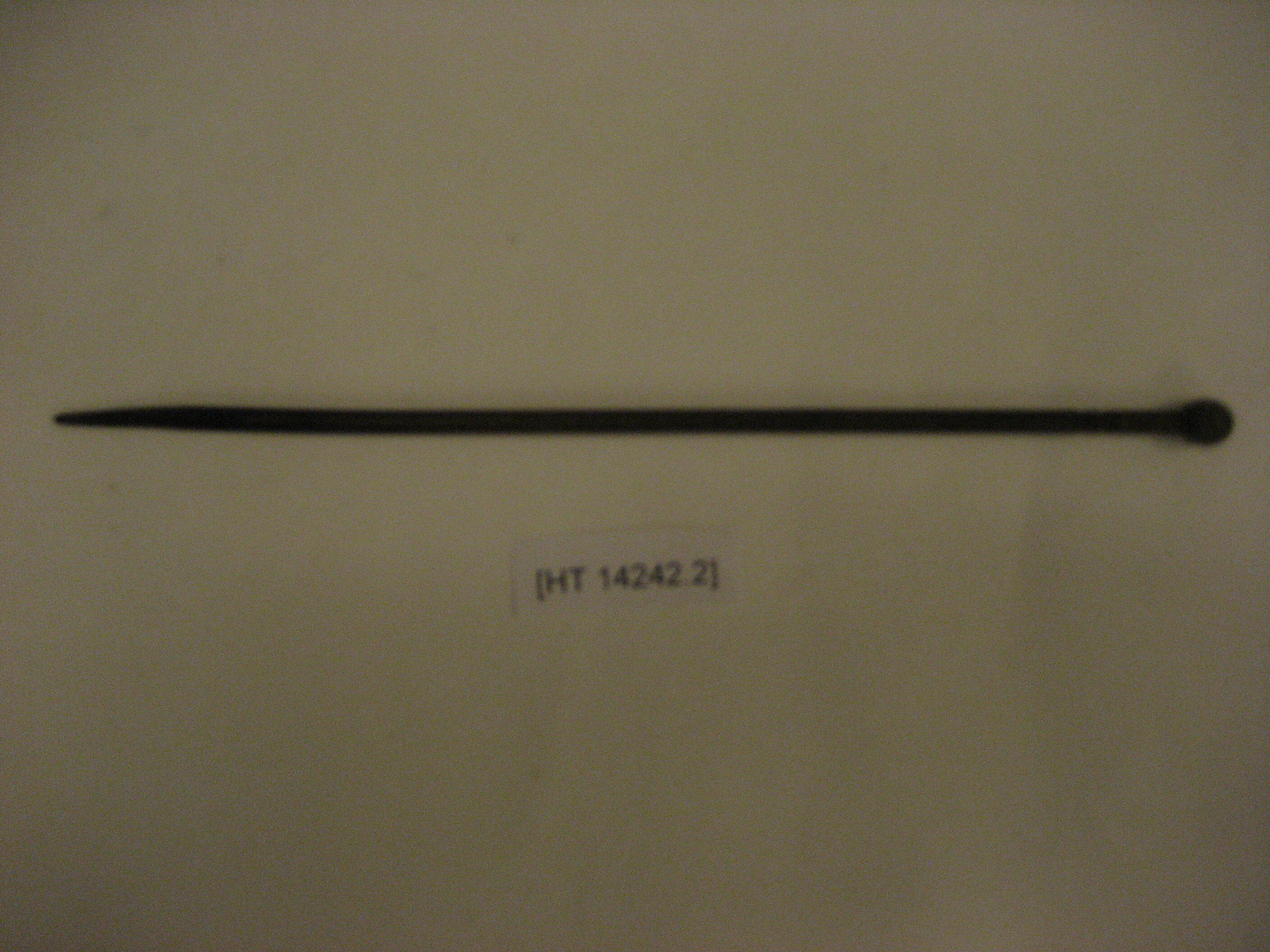 Solid bronze charcoal stick resembling a chopstick, with a circular barrel head at one end. Charcoal stick tapers down to one end.